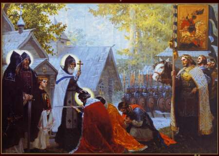 БЛАГОСЛАВЛЯЕТ ВЕЛИКОГО КНЯЗЯ ДИМИТРИЯ ДОНСКОГО